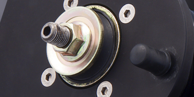 ピストンロッド内のネジを16段階に調節して、オイルの流量で減衰力を調整し圧力による車体の動きを制御できます。